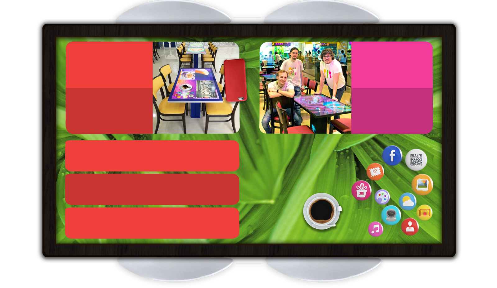 Часть рекламных клиентов заведениям приводит сам Kodisoft (например, таких, как Coca Cola, которая покупает рекламное проявление во время спортивных трансляций). Kodisoft помогает и с разработкой приложений, потому что особенно на первых порах у заведения нет понимания, каким должен быть интерфейс программы для стола.